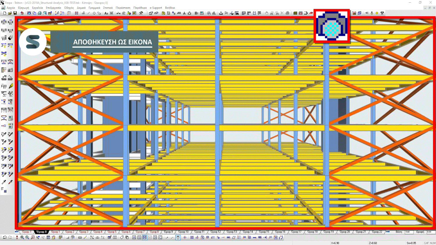 Προστέθηκε η “Έλξη κόμβου” στην εργαλειογραμμή «Σχεδιαστικά» για να γίνει ακόμα πιο καθαρή η επιλογή σημείων κατά την 3D σύνθεση στατικού φορέα.