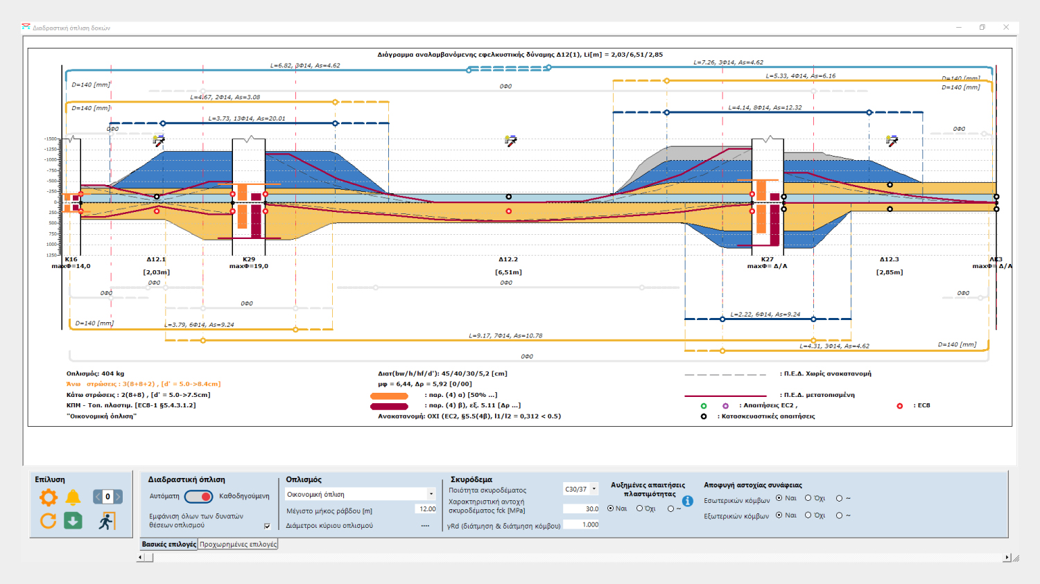 Στο διάγραμμα απεικονίζονται παραστατικά οι ράβδοι του οπλισμού με διαφορετικούς χρωματισμούς, προσφέροντας άμεση και ξεκάθαρη εικόνα για:
