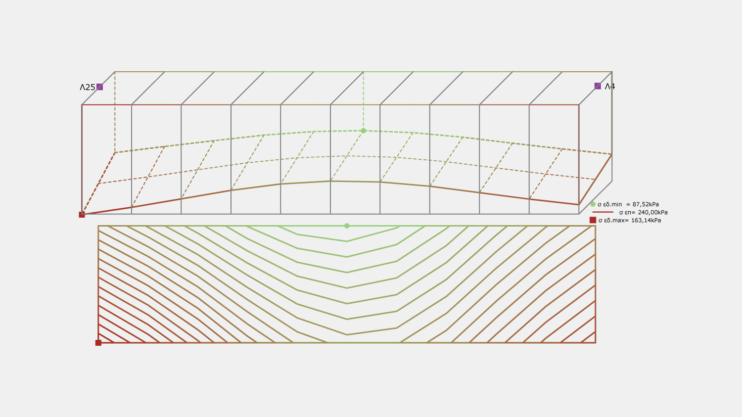 3D σχέδιο τάσεων εδάφους πεδιλοδοκού στο τεύχος αποτελεσμάτων του Fespa