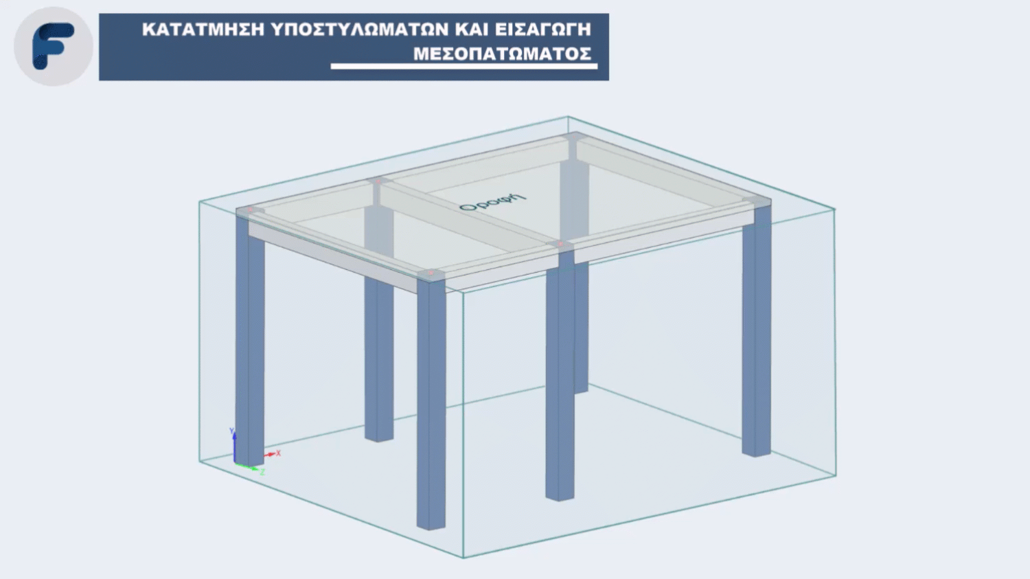 Κατάτμηση επιλεγμένων υποστυλωμάτων στο υψόμετρο οροφής του επιλεγμένου ορόφου στο 3D περιβάλλον (OpenGL) του Fespa.